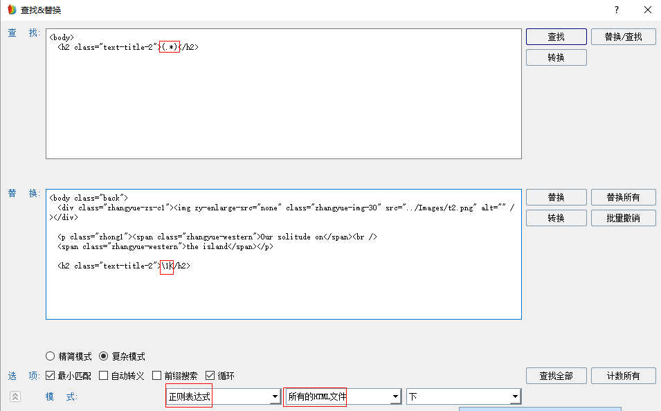 ##### 一本书会有很多章节,可以写好其中的一个章节,用正则式批量替换文中相同章节样式<font color=#000066> ------------ 一本书刚打开,篇章页是左边这样,我们要做成右边这样,可以先把其中一个篇章页的样式写好 </font> |  |  | | ------------ | ------------ | | | | 使用查找替换搜索框 用正则式把所有的篇章页替换成写好的样式,这样就避免一章一章的去写了。  ------------ 二级标题要把左边的样式写成右边的样式,也是先写好其中一个二级标题的样式 |  |  | | ------------ | ------------ | | | | 使用查找替换