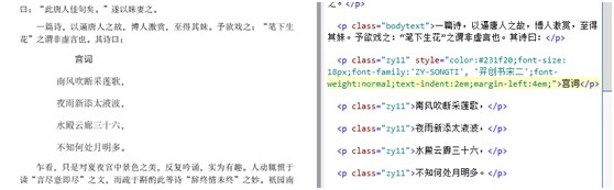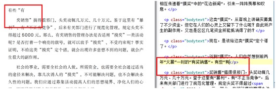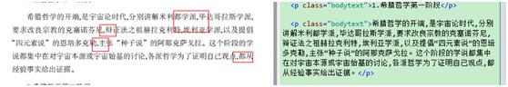 ### 1.多余span未删除  ##### 解决方法 使用正则批量替换  ### 2.样式漏刷  ##### 解决方法 用这个正则可以查出没替换的样式。修改即可  <br /> **诗歌需要改成诗歌的样式,pdf上如果有间距要设置成上间距的样式** <br />   ### 3.硬回行  ##### 解决方法 `.{25,}[^。……>!\©""”—::;’?!]</p>` 用这个正则可以查出硬回车,修改即可。 ### 4.标题混入正文  ##### 解决方法 用查硬回车的正则即可查出来,如果没在末尾,需要对照pdf查。 ### 5.英文标题未修改  ##### 解决方法 参照这篇文章 http://www.iremaker.com/college/article/detail?id=148 ### 5.缺图片  ##### 解决方法 排版的时候要对照pdf来排,这样就不会漏掉图片哦! ### 6.数字乱码  ##### 解决方法 参照这篇文章 http://www.iremaker.com/college/article/detail?id=141 ### 7.正则使用错误,导致内容被替换 <font color=#FF0000>使用的时候注意,看清楚再替换</font>   ### 8.乱码  ##### 解决方法 对照pdf看内容 ### 9.识别出来圆圈丢失  ##### 解决方法 带圆圈的文字截成行内图 ### 10.行内图反色  ##### 解决方法 参照这篇文章 http://www.iremaker.com/college/article/detail?id=191 ------------ ###### 注意: 排版的时候一定要核对内容哦!^ ^