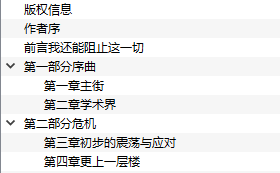 ###### 1.和原书目录结构保持一致首先查看目录是否和原pdf的目录或网上的目录一致###### 2.目录是否完整,目录避免出现漏掉的章节,如序言、后记、版权信息或漏掉某一章等目录中不要出现文前下图缺少版权信息、第二章、第三部分<div align=center></div>###### 2.目录中不要出现英文,如“part one” 目录对应改成“第一部分”| <div align=center></div> | <div align=center></div> || :------------: | :------------: || 目录错误 | 目录正确 |###### 4.目录标题格式统一,章节后面要有空格,第XX章 XXXXXX。<div align=center></div>###### 5.注意目录的跳转链接是否正确点击目录上的第几章,看是否能跳转到对应的html页面一般会出现目录跳转无对应页面或目录跳转到其他页面**<font color=#FF00FF>★小练习</font>**以下四个目录哪个是正确的()| <div align=center></div>A | <div align=center></div> B || :------------: | :------------: || <div align=center></div>C | <div align=center></div> D |**正确答案**:B**解析**:A选项层级混乱;C选项缺少版权信息;D选项章节中少空格,故选B。
