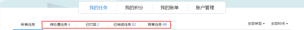 科普一下,任务状态都是如何归类和任务状态都对应什么情景吧! ###### 一、任务筛选栏分为: <div align=center></div> | 分类 |对应的任务状态 | | ------------ | ------------ | | 待处理任务 | 正常待处理、打回待处理 | | 已打回 |已打回 | |已完成任务 | 正常已完成、已支付、打回已完成 | |异常任务 |已放弃、已回收、待放弃审核 | ###### 二、任务状态对应的情景: **1、正常待处理** (领取任务时、上传任务之前) **2、正常已完成** (上传作品) **3、已打回**-打回方状态 (排版打回校对、外审打回排版、内审打回排版) **4、打回待处理**-被打回方状态 (校对被排版打回、排版被外审打回、排版被内审打回) **5、打回已完成** (被打回方修改后上传作品) **6、审核通过** (内审正常已完成)